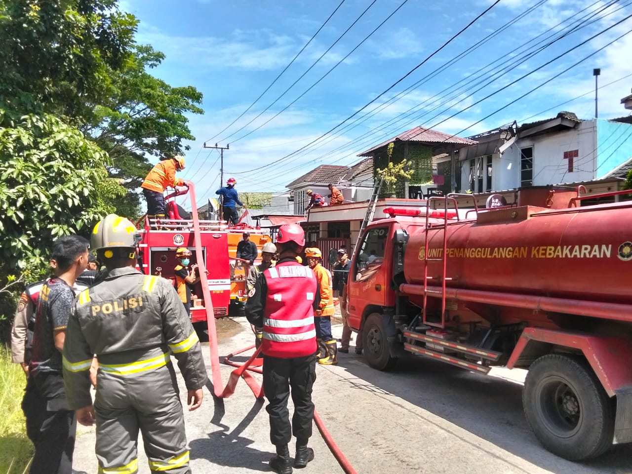 Api membakar sedikitnya satu unit bangunan rumah yang terbuat dari beton.