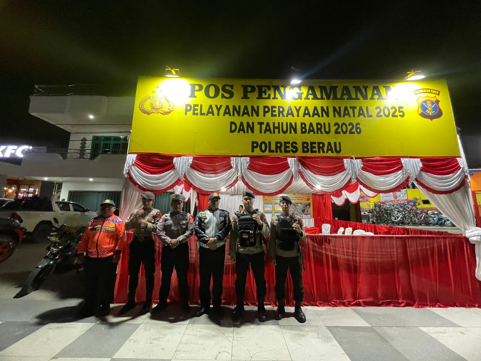 Tanjung Redeb – Satuan Brimob Polda Kaltim melalui Kompi 3 Batalyon C Pelopor Berau terus memantapkan kesiapan dalam mengawal perayaan akhir tahun guna menciptakan situasi yang kondusif. Pada Selasa (23/12/2025), tim patroli yang dipimpin oleh AIPDA Tripianto bersama empat personel lainnya melaksanakan patroli skala besar dalam rangka Operasi Kepolisian Terpusat Lilin Mahakam 2025. Langkah ini diambil sebagai upaya preventif untuk memantau langsung dinamika keamanan dan ketertiban masyarakat (Kamtibmas) di wilayah Kabupaten Berau menjelang puncak perayaan Natal.