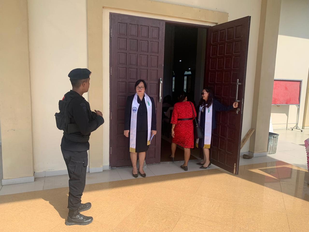 Di Gereja Katolik Kristus Bangkit, jemaat melaksanakan ibadah yang dipimpin oleh Pastor Romo Soedirman dengan penuh kehikmatan. Sementara itu, di lokasi kedua yakni Gereja GPIB Getsemani, ibadah dipimpin oleh Pdt. Eufrasia Hetty Amelia Jocom Raunting, S.Si. Kedua gereja tersebut terpantau melaksanakan aktivitas ibadah mulai pukul 08.00 hingga 10.00 WITA dengan kepatuhan tinggi terhadap aturan ketertiban. Personel Brimob yang bersiaga di lokasi memberikan rasa aman bagi para jemaat, sekaligus melakukan pemantauan situasi di sekitar area tempat ibadah guna mengantisipasi potensi gangguan keamanan.