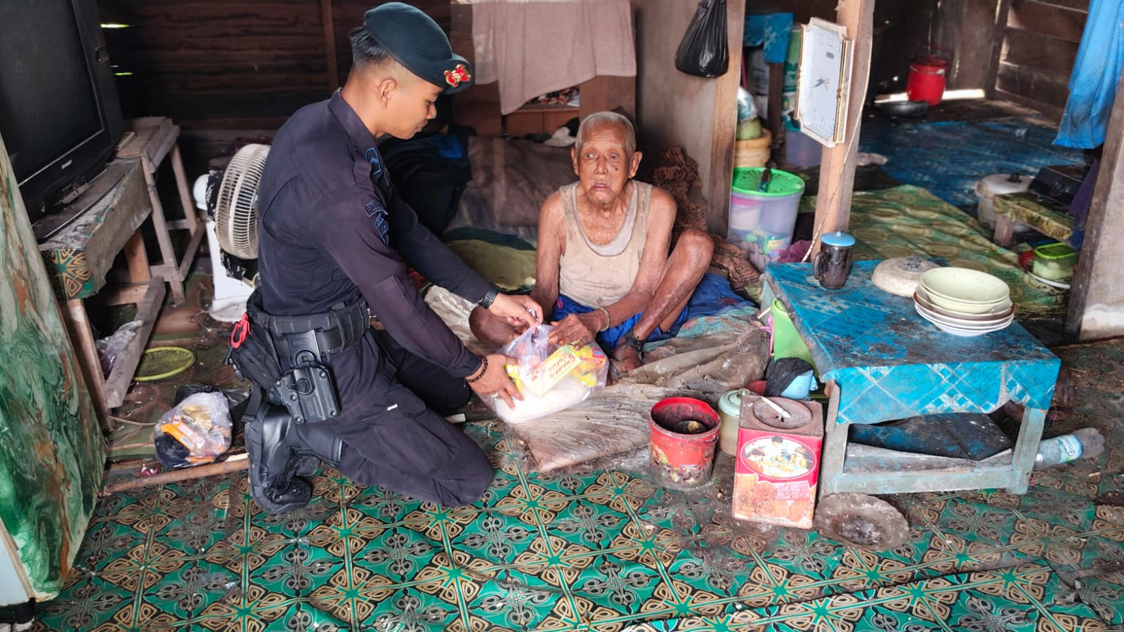 Wujud Bakti untuk Lansia, Brimob Kaltim Sambangi Kediaman Bapak Sari di Pelosok Balikpapan Utara